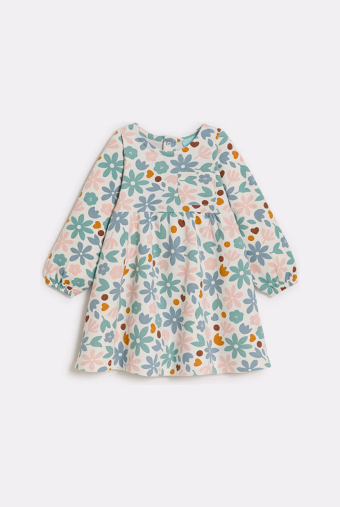 Vestito floreale in tessuto felpato effetto piqueé per neonata